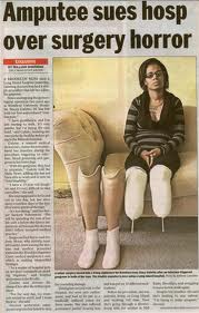 Extra Extra. Here is an amputee suing the hospital after a surgery horror. Medical atrocities are in no way a thing of the past. Headline after headline has to make you wonder why they continue at such an alarming rate. If you read all about it, you might feel a little sick afterwords, as I felt slightly sick after researching and writing this piece on iatrogenic nightmares, which means, these occurrences are relating to illness or injury caused by medical exam, treatment, or surgery.